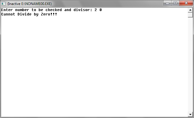 We know that division by zero is not possible and if we don't take care of this condition and user puts divisor as 0 then program may get shut abruptly(error will occur).